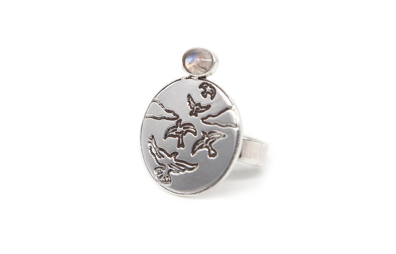 Bird Flight Ring With Moonstone (Adjustable)