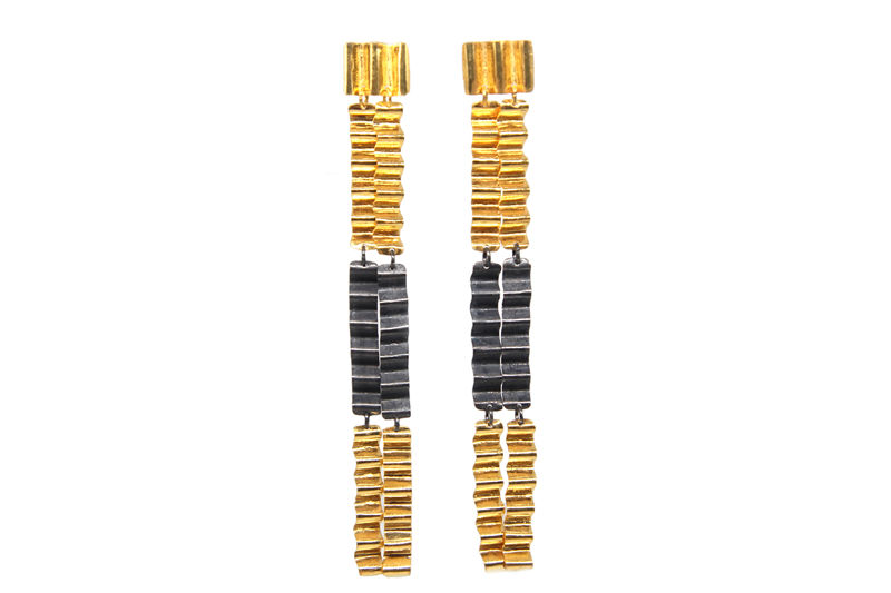 Double Crinkle Cut Earring - Oxidized And Gold Plated