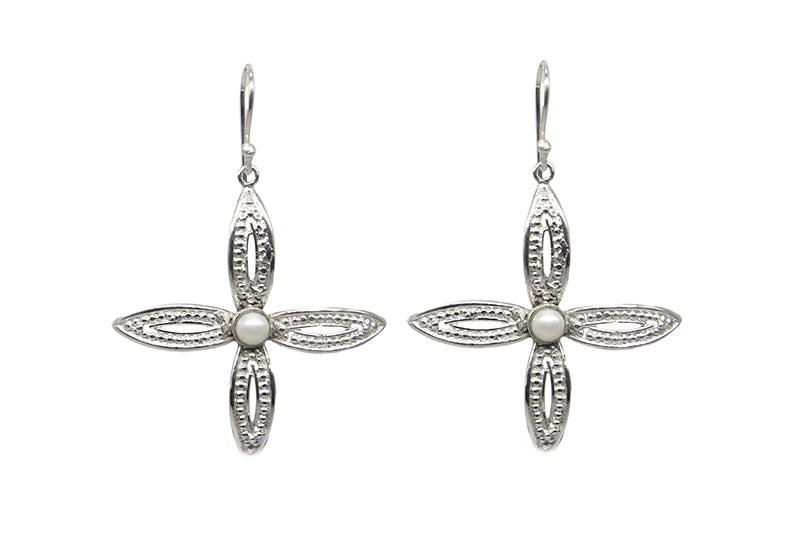 This elegant flower shaped earrings are handcrafted in sterling silver. The flower petals are made with silver granules and wire. These earrings are quite enchanting.