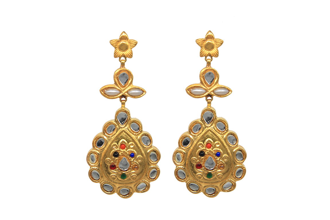 Kundan setting is a technique most closely associated with the jeweled arts of the Mughal emperors. Perfect for special occasions and meant to be cherished for generations. In every piece, there’s a piece of history, and a piece of culture. Handcrafted in 925 Silver 24k Gold Plated Nauratan Stones Glass Polki Each piece is ethically produced and handcrafted from scratch to finish by our dedicated team of artisans in our charming and cohesive workshop/studio. Each stage of production is diligently overseen, from melting and making the Sterling Alloy to finishing, to ensure highest quality of each piece. All our jewelry is handmade, slight variations may occur.