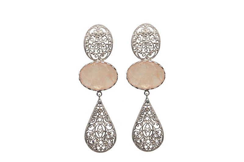 "Filigree or Taarkashi, is a meticulous craft that involves skillfully soldering plain or twisted silver wire and granules to form intricate motifs. This technique requires patience and precision as very thin wires are delicately intertwined to create a symphony of fine textures and patterns. Made in Amna Shariff signature filigree style.