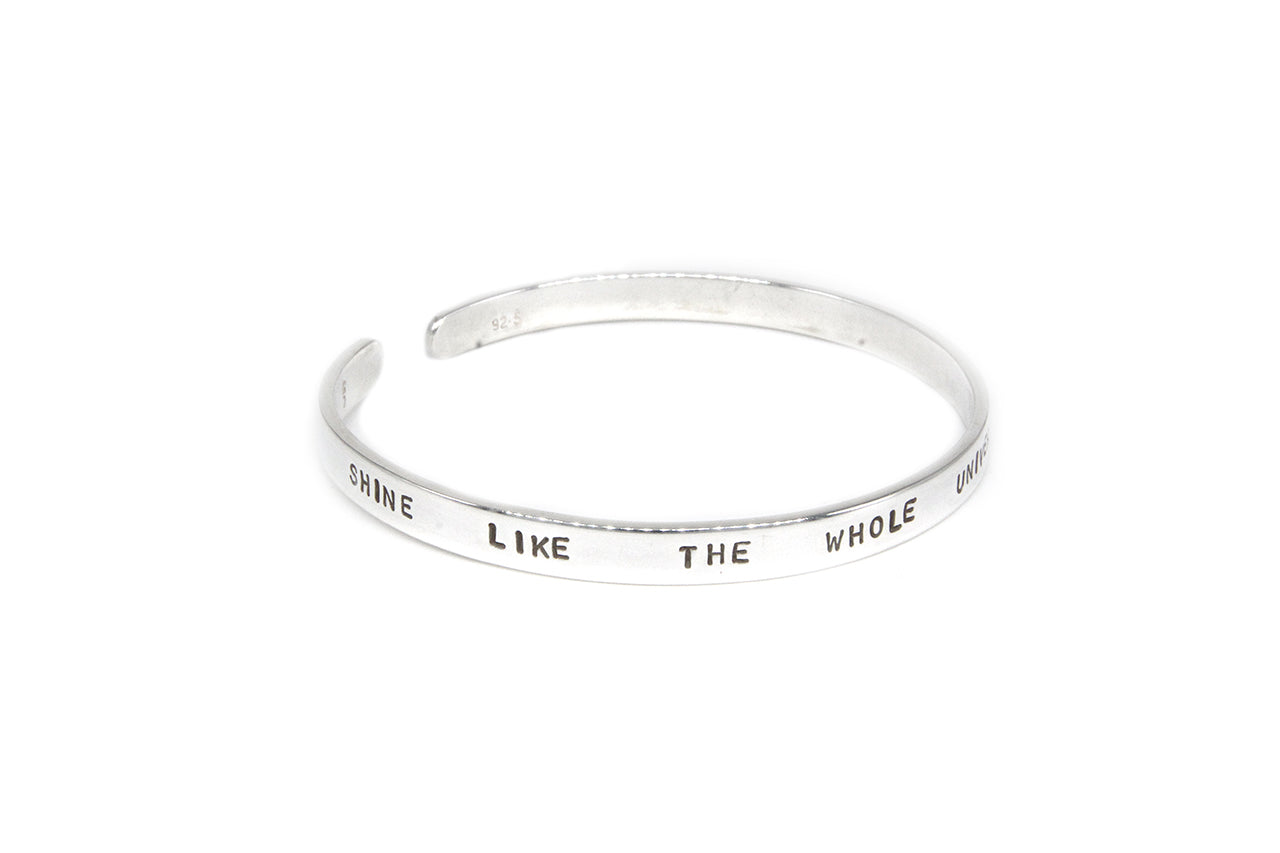 For the love of Rumi and his wisdom on life. This inspirational series is a perfect gift for your loved ones. Hand stamped with famous quotes of RUMI in English. •Handcrafted in 925 Silver Each piece is ethically produced and handcrafted from scratch to finish by our dedicated team of artisans in our charming and cohesive workshop/studio. Each stage of production is diligently overseen, from melting and making the Sterling Alloy to finishing, to ensure highest quality of each piece. All our jewelry is handmade, slight variations may occur.