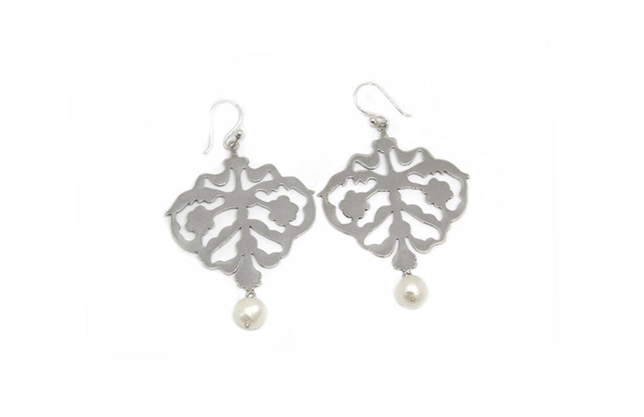 Silver Cutout And Pearl Danglers