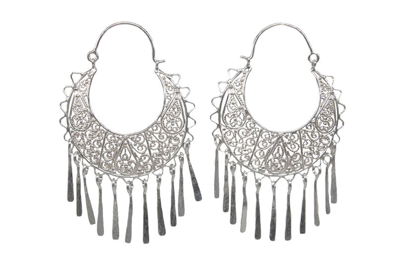 Filigree or Taarkashi, is a meticulous craft that involves skillfully soldering plain or twisted silver wire and granules to form intricate motifs. This technique requires patience and precision as very thin wires are delicately intertwined to create a symphony of fine textures and patterns. Made in Amna Shariff signature filigree style. Handcrafted in 925 Silver  Each piece is ethically produced and handcrafted from scratch to finish by our dedicated team of artisans in our charming and cohesive workshop / studio.Each stage of production is diligently overseen, from melting and making the Sterling Alloy to finishing, to ensure highest quality of each piece. All our jewelry is handmade, slight variations may occur.