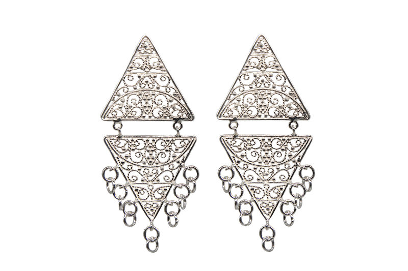 Filigree or Taarkashi, is a meticulous craft that involves skillfully soldering plain or twisted silver wire and granules to form intricate motifs. This technique requires patience and precision as very thin wires are delicately intertwined to create a symphony of fine textures and patterns. Made in Amna Shariff signature filigree style. Handcrafted in 925 Silver   Each piece is ethically produced and handcrafted from scratch to finish by our dedicated team of artisans in our charming and cohesive workshop / studio.Each stage of production is diligently overseen, from melting and making the Sterling Alloy to finishing, to ensure highest quality of each piece. All our jewelry is handmade, slight variations may occur.
