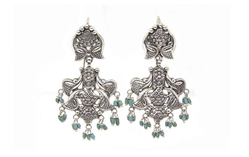 This Collection is an ode to our cultural heritage without being burdensome, a tribute to the past while embracing the modern world without losing its soul. Yasmeen collection is my reflection in designing wedding jewelry. This collection is made in repousse technique, where each motif is cut out and linked with other silver elements, creating decorative frames. This collection is in memory of my late mother. Handcrafted in 925 Silver Turquoise beads  Each piece is ethically produced and handcrafted from scratch to finish by our dedicated team of artisans in our charming and cohesive workshop/studio. Each stage of production is diligently overseen, from melting and making the Sterling Alloy to finishing, to ensure highest quality of each piece. All our jewelry is handmade, slight variations may occur.