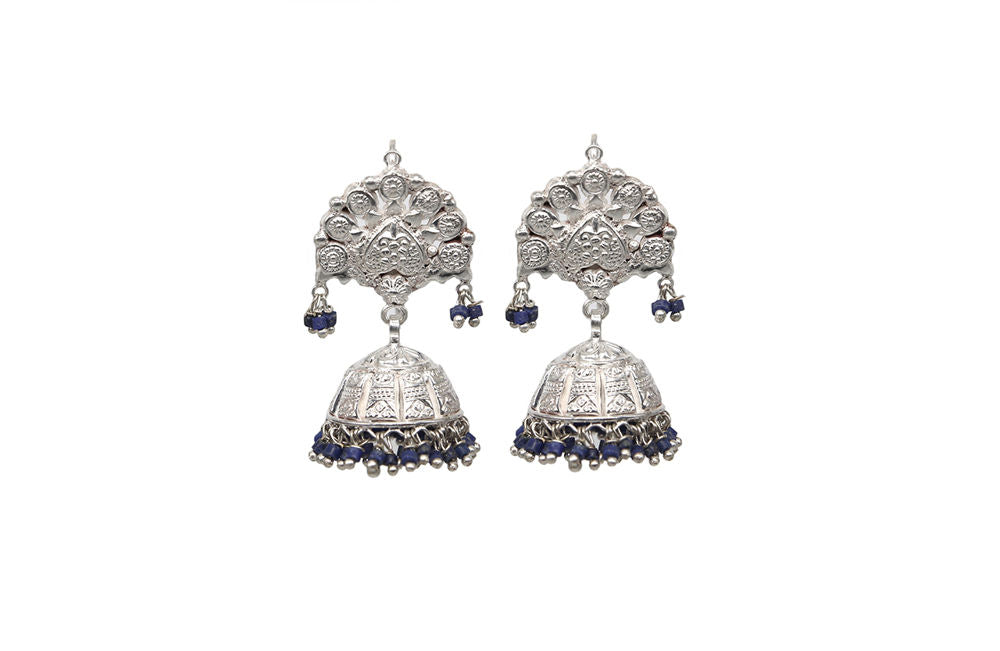 Yasmeen Jhumkas With Lapizlazuli Beads